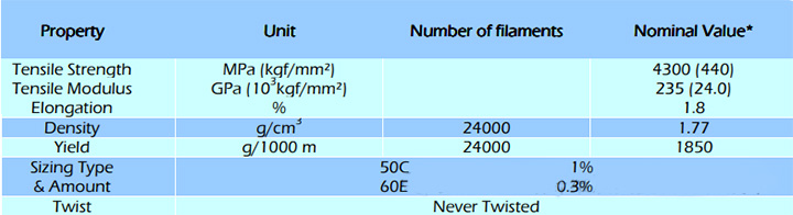 T710S:由东丽欧洲公司开发,丝束规格24K,拉伸强度4700MPa、拉伸模量265GPa、断裂伸长率1.8%、线密度1625g/km(欧洲区销售)。