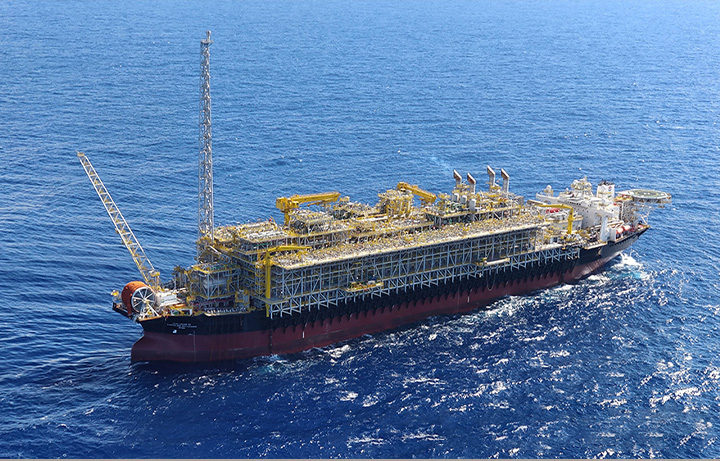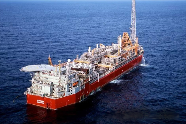 距陆地数百公里油田上的浮式生产储运装置