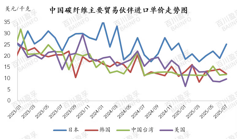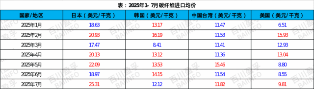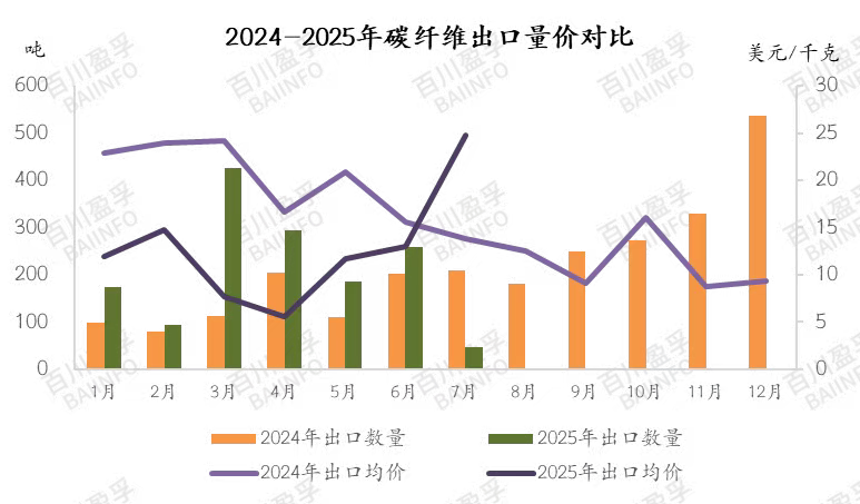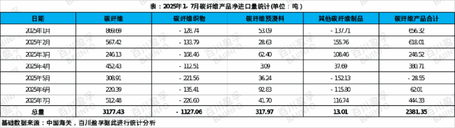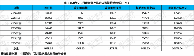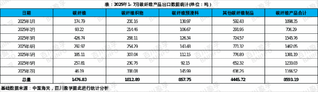 【碳纤维】2025年7月碳纤维产品进出口数据分析